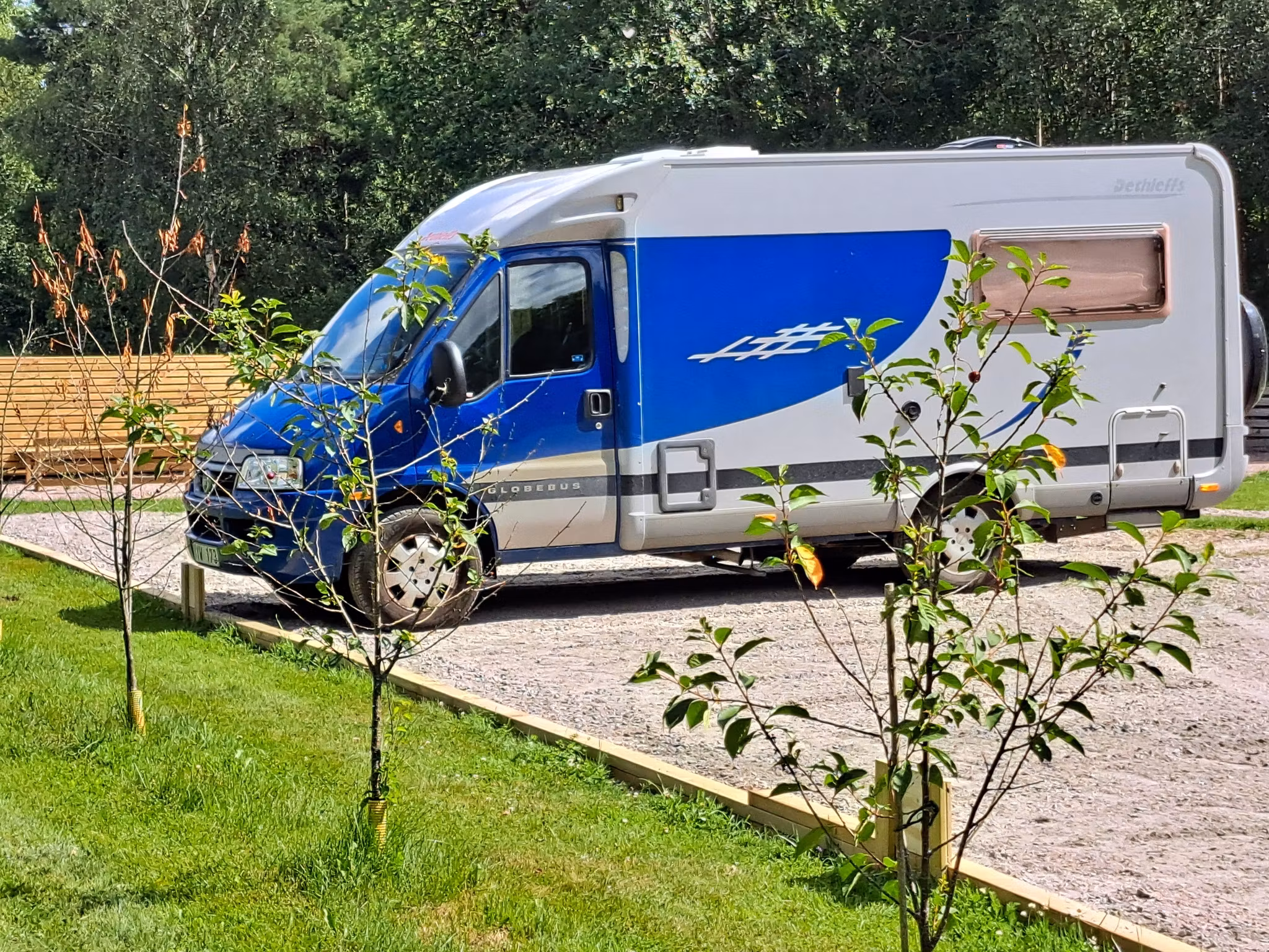 * Stora platser - cirka 7x10 meter (max.längd på husbil = 9 meter).