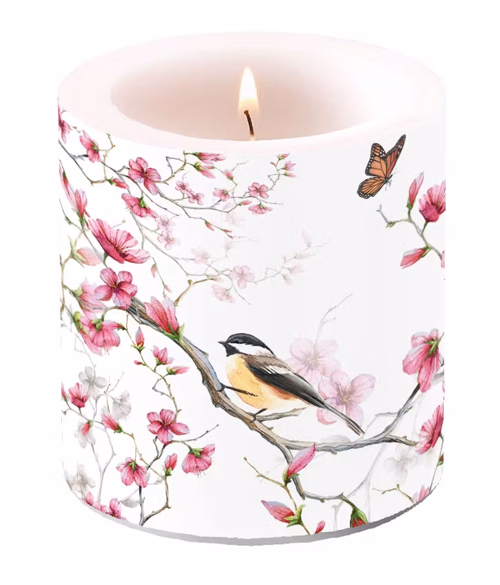 Dekorljus med ett vackert vårmotiv med fåglar och blommor. Från Ambiente.