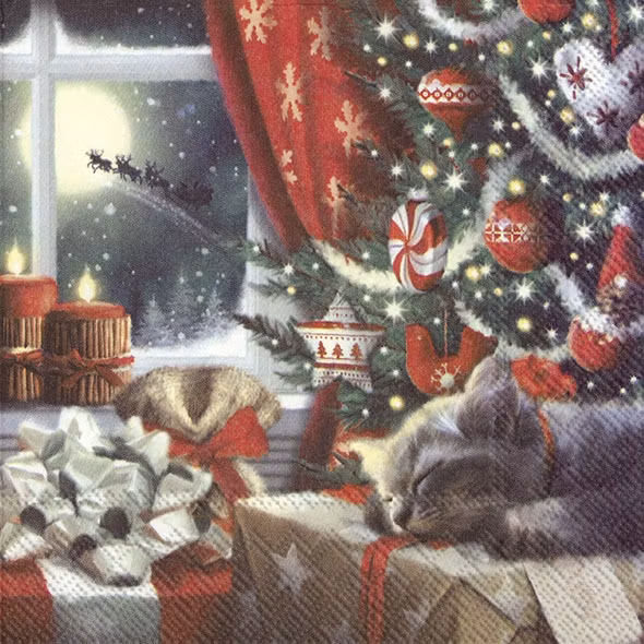 En avslappnad katt som vilar sig inför julens bus.