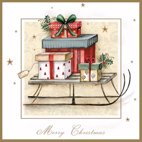 Julservett i fin kvalitet från ti-flair med en släde med julklappar. Fint till din dukning på jul.