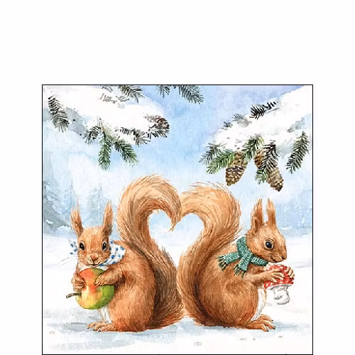 Servett i bra kvalitet från Ambiente. Ett  fint motiv med två ekorrar. Fin, präglad bårdkant.