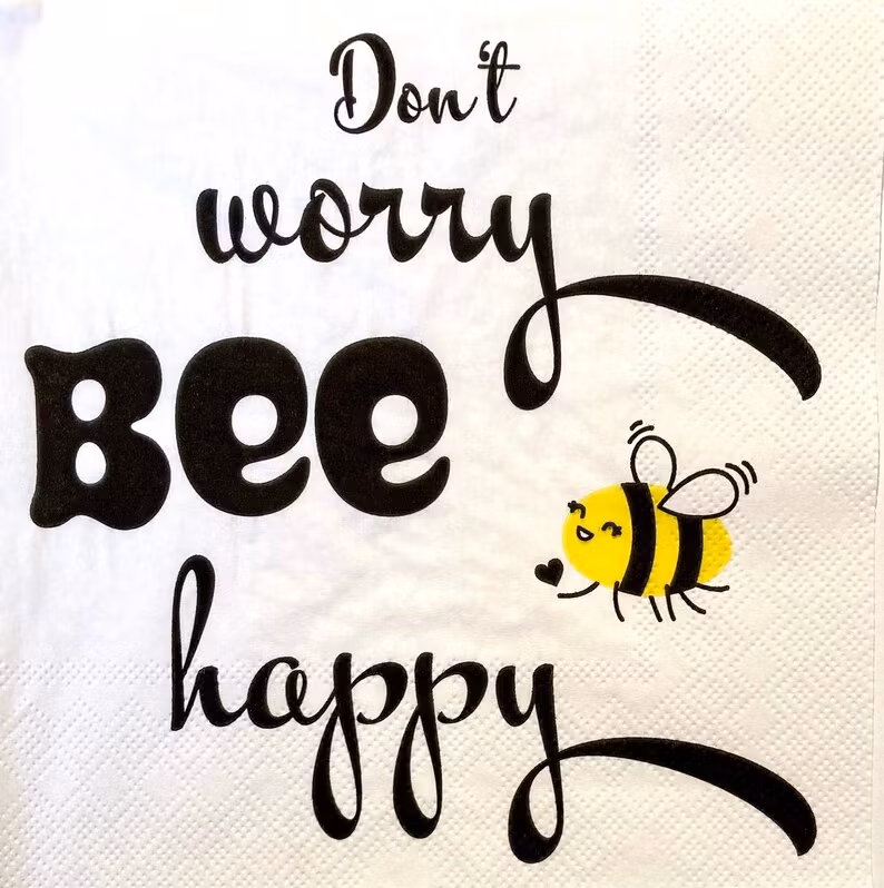 Lunchservett i bra kvalitet från Ambiente med texten "Don´t worry Bee happy". Fin, präglad bårdkant.