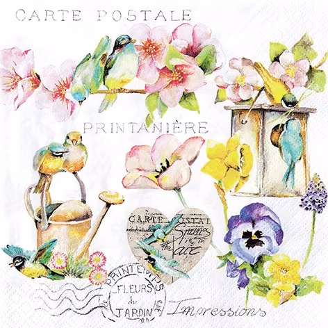 Lunchservett i bra kvalitet från Home Fashion. Vårligt motiv med blommor och fåglar.