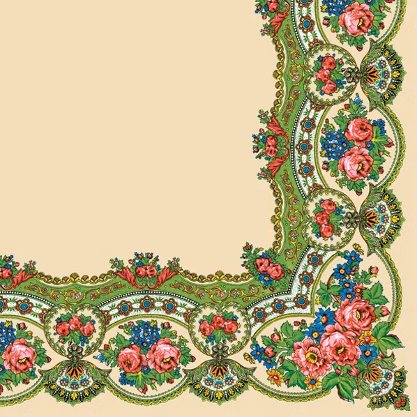 Lunchservett i bra kvalitet från Maki-Polmak. Folkloristiskt motiv i form av en bård med bland annat rosor.