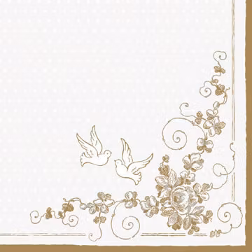 Lunchservett i bra kvalitet från Maki Pol-Mak Collection. Vackert motiv med duvor i vitt och guld. Fin, präglad bårdkant.