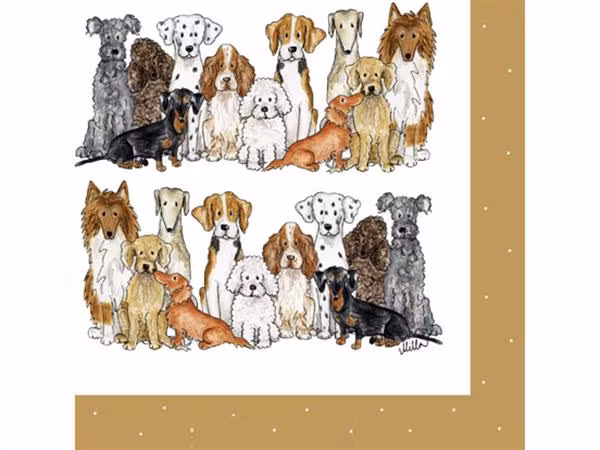 Fin servett med hundmotiv - originaldesign Camilla Ståhl. Bra kvalitet. Innehåller 20 st servetter, 3 lager.