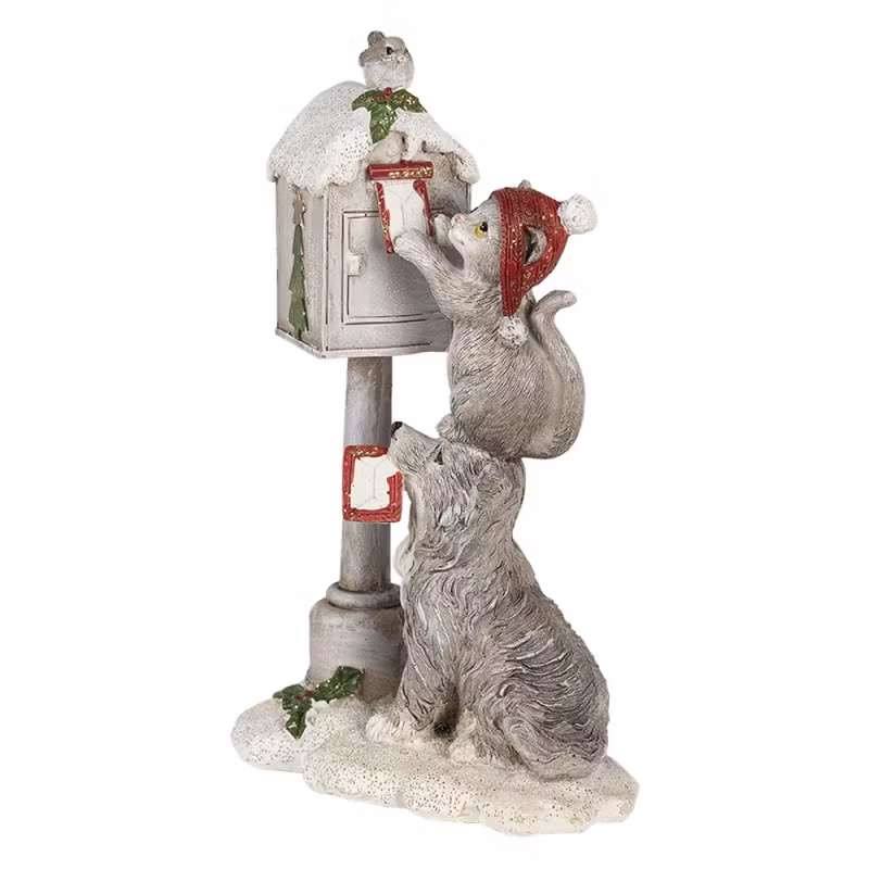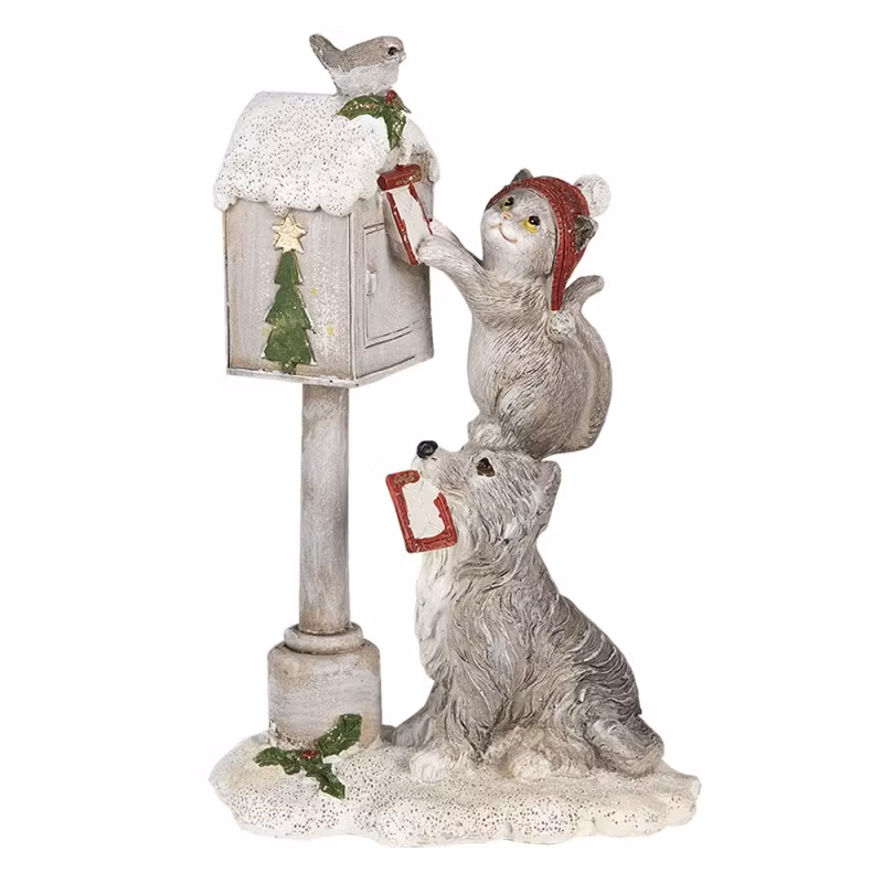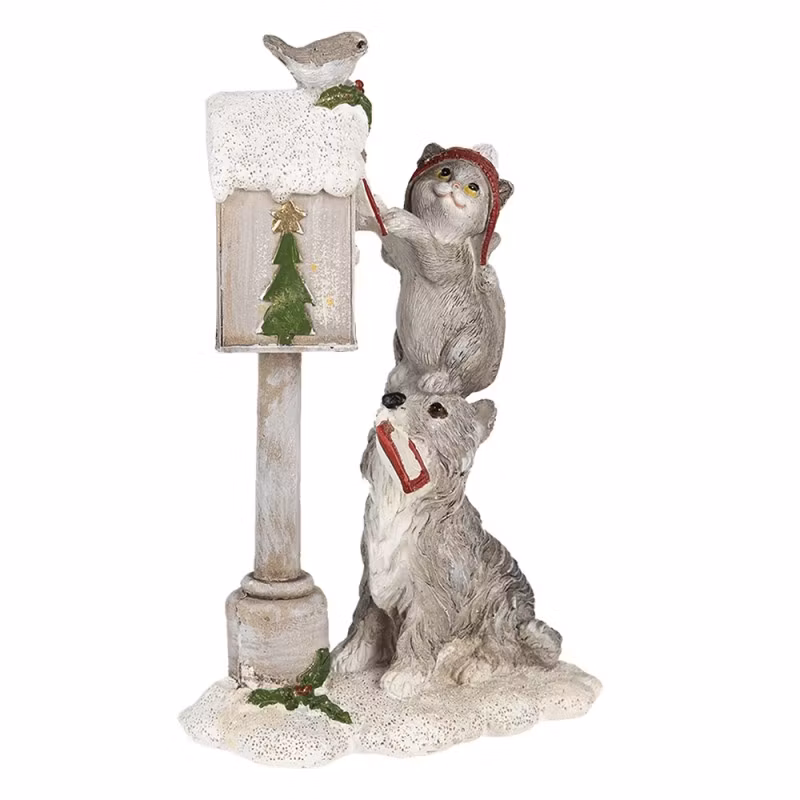Fin juldekoration med en hund och katt som hjälps åt med att posta julbreven. Fina detaljer.