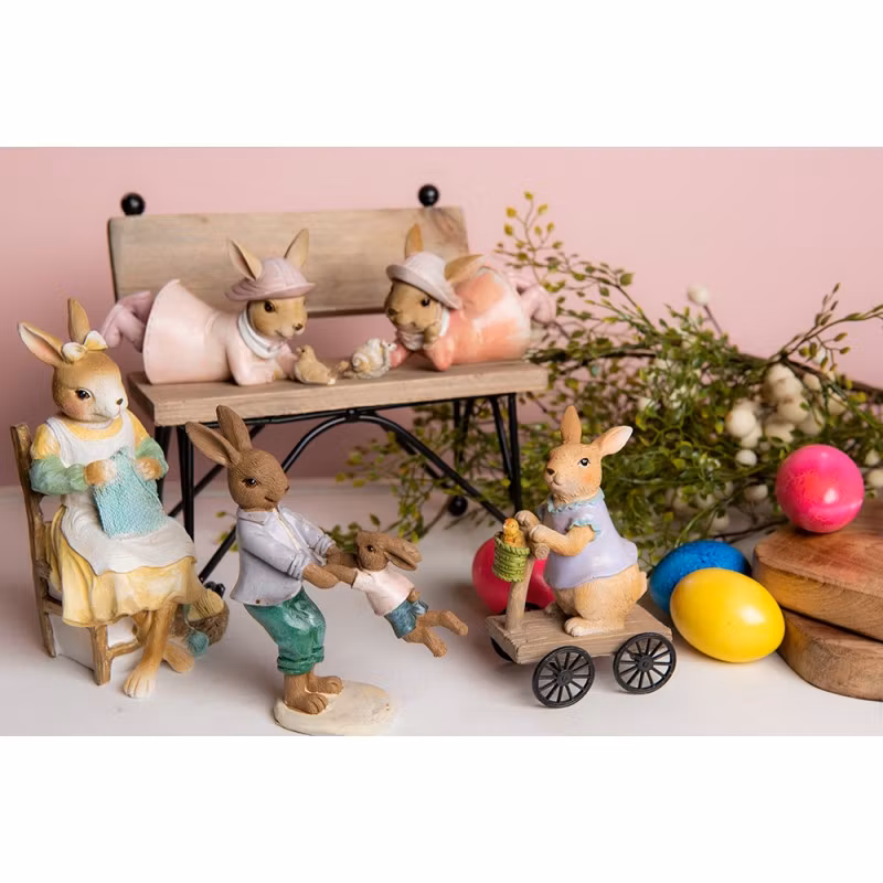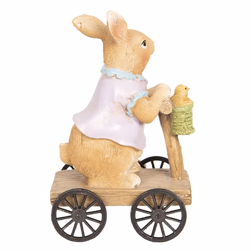 Gullig kanin på fyrhjuling med kompisen kycklingen med i cykelkorgen. Fint att ha som påskdekoration eller också att ha framme hela året.