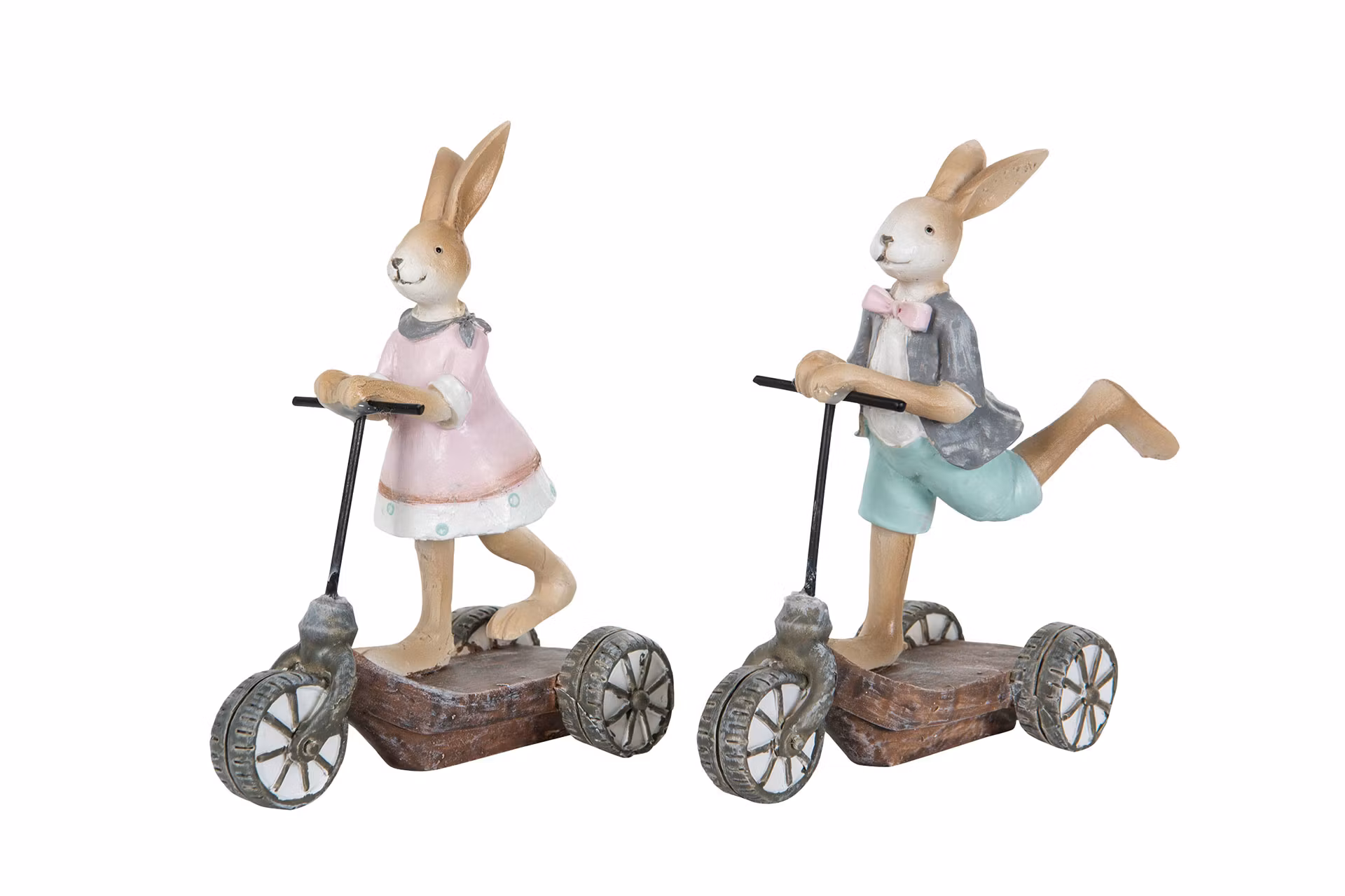 Full fart på kaninerna på sina sparkcyklar. Fint påskpynt eller att ha framme som dekoration hela året.
