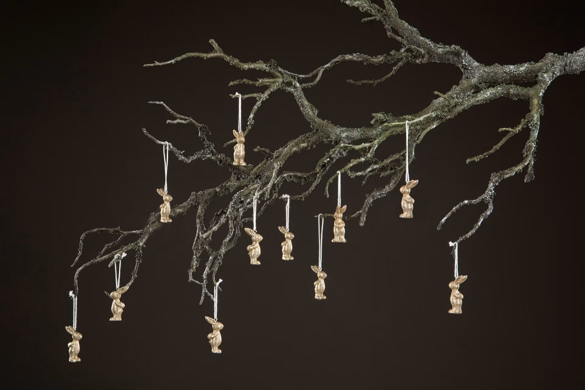 Söta kaniner i glittrig champagnefärg till påskriset. Säljes i 6-pack.