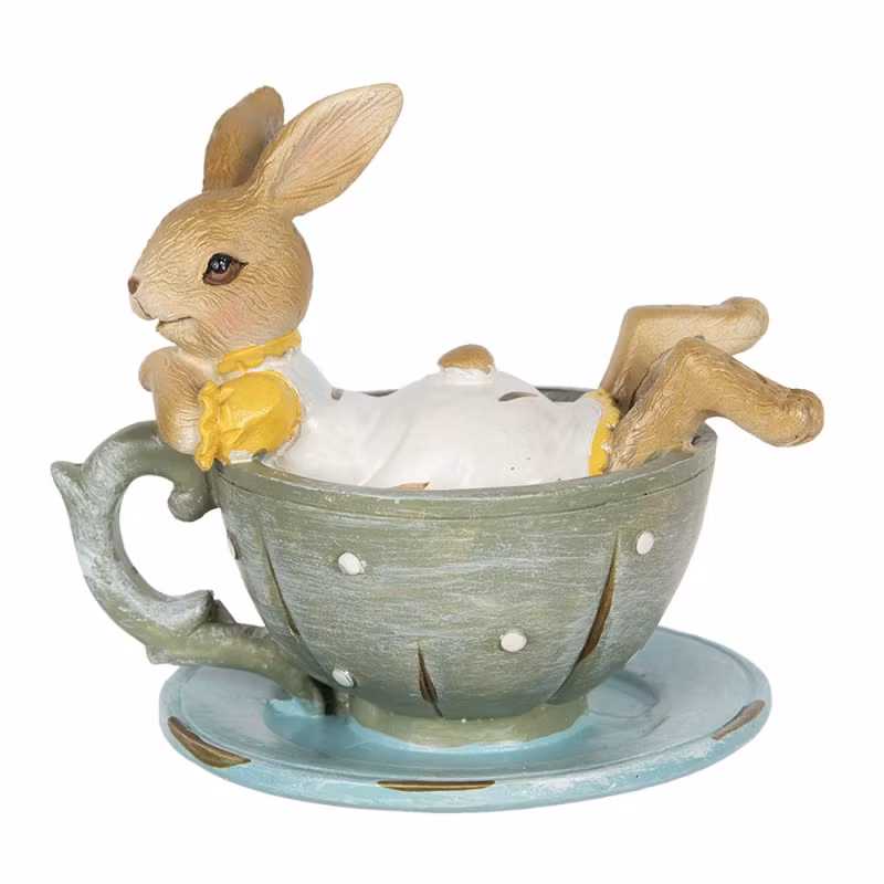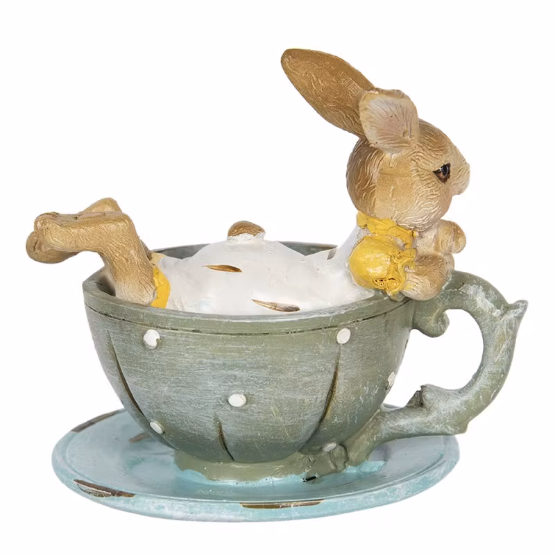 En liten söt kanin som ligger i sin kopp! Fin dekoration under påsk eller under hela året.